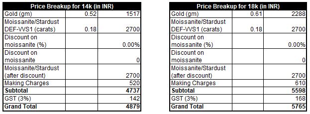 Gold Weight (approx) – 0.52gm (14k) or 0.61gm (18k)