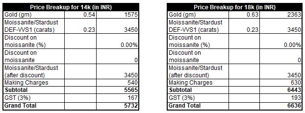 Gold Weight (approx) – 0.54gm (14k) or 0.63gm (18k)