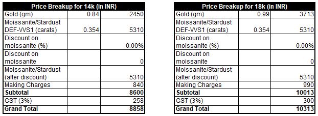 Gold Weight (approx) – 0.84gm (14k) or 0.99gm (18k)