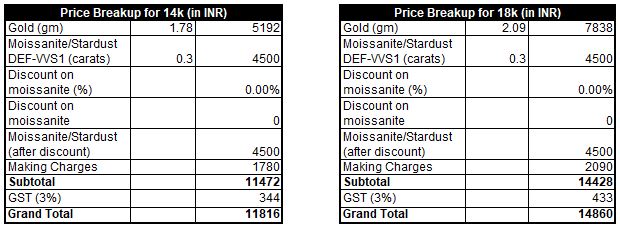 Gold Weight (approx) – 1.78gm (14k) or 2.09gm (18k)